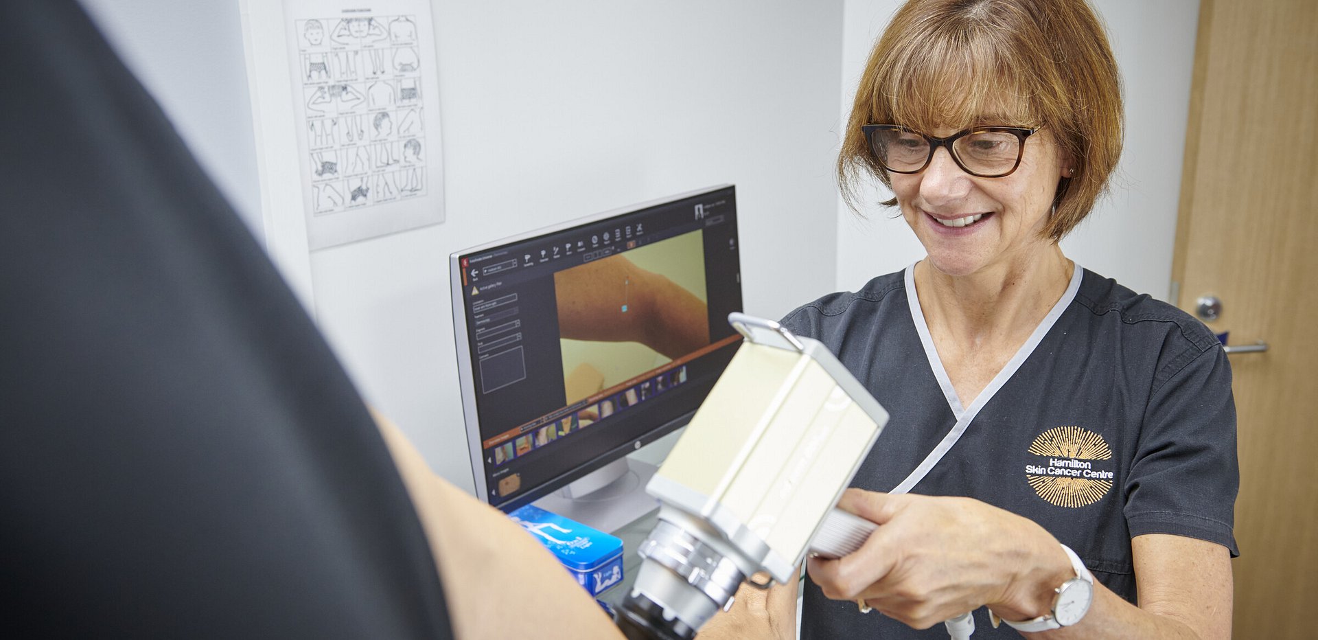 A dermatoscope will be used to examine your skin, this has a high-quality magnifying lens and a powerful lighting system. This visualises the skin structures and patterns in much greater detail which allows earlier and more accurate diagnosis of skin cancer.